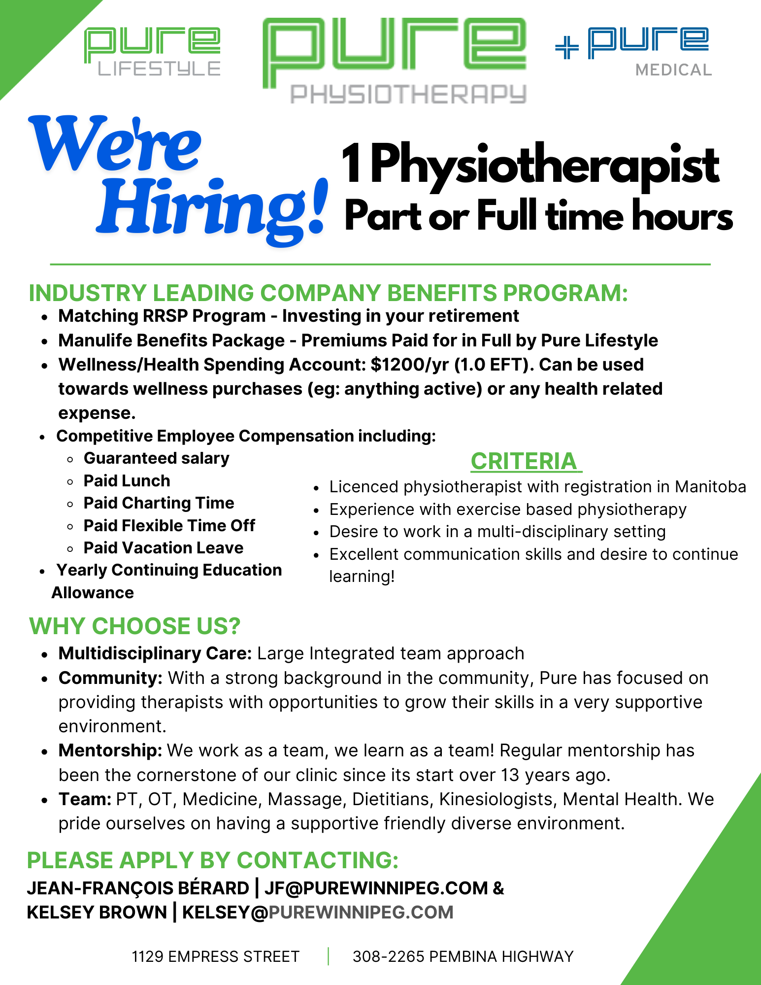 Pure Physiotherapy-Full & Part Time Positions Job Posting